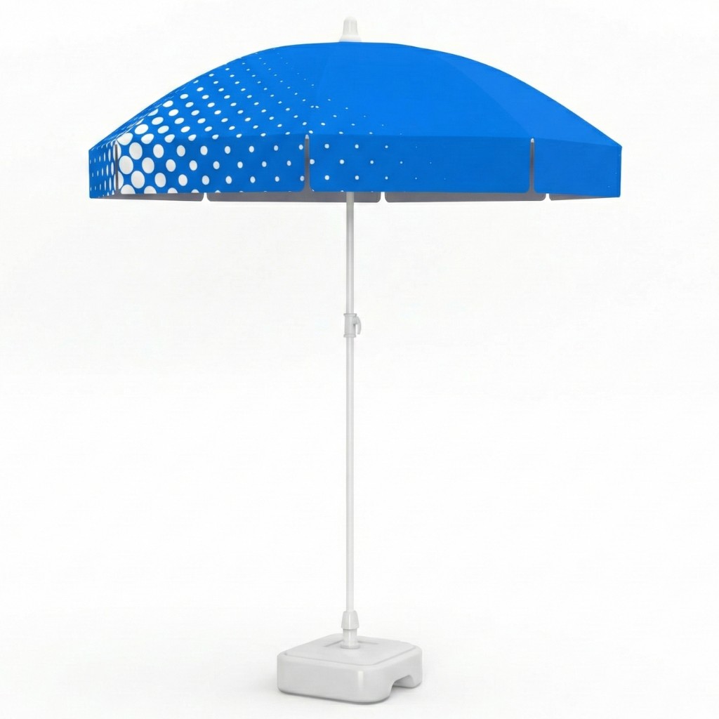 When lightness and mobility are key, the beach umbrella line is perfect as printed beach umbrellas. They’re an attractively priced and practical form of advertising, perfect for outdoor branding. Their compact size and low weight make them easy to transport, set up, and store. They’re perfect for the beach, balcony, patio, or garden. An additional advantage is the adjustable pole option, which allows you to adjust the angle of the canopy relative to the sun, ensuring comfort and effective protection.