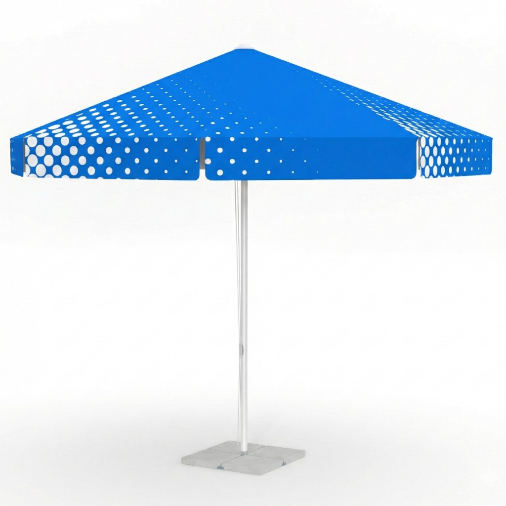 The round umbrella line features a convenient and intuitive opening system. Simply push up the special handle and secure the canopy. Thanks to this simple system and the wide range of available sizes, this line of umbrellas is perfect for both gardens and hotels. The umbrella canopy will be an excellent promotional tool for your brand.