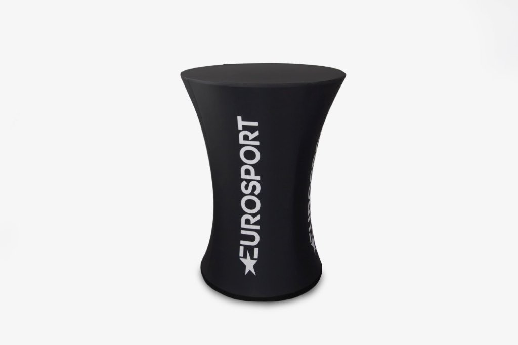 Once unfolded, it creates an elegant, lightweight, and functional piece of event furniture. The top and sides provide a full advertising surface, made of durable, impregnated polyester, which perfectly showcases the print. The graphics are printed using sublimation technology, ensuring vibrant colors and crisp detail. Available in 110x80cm.